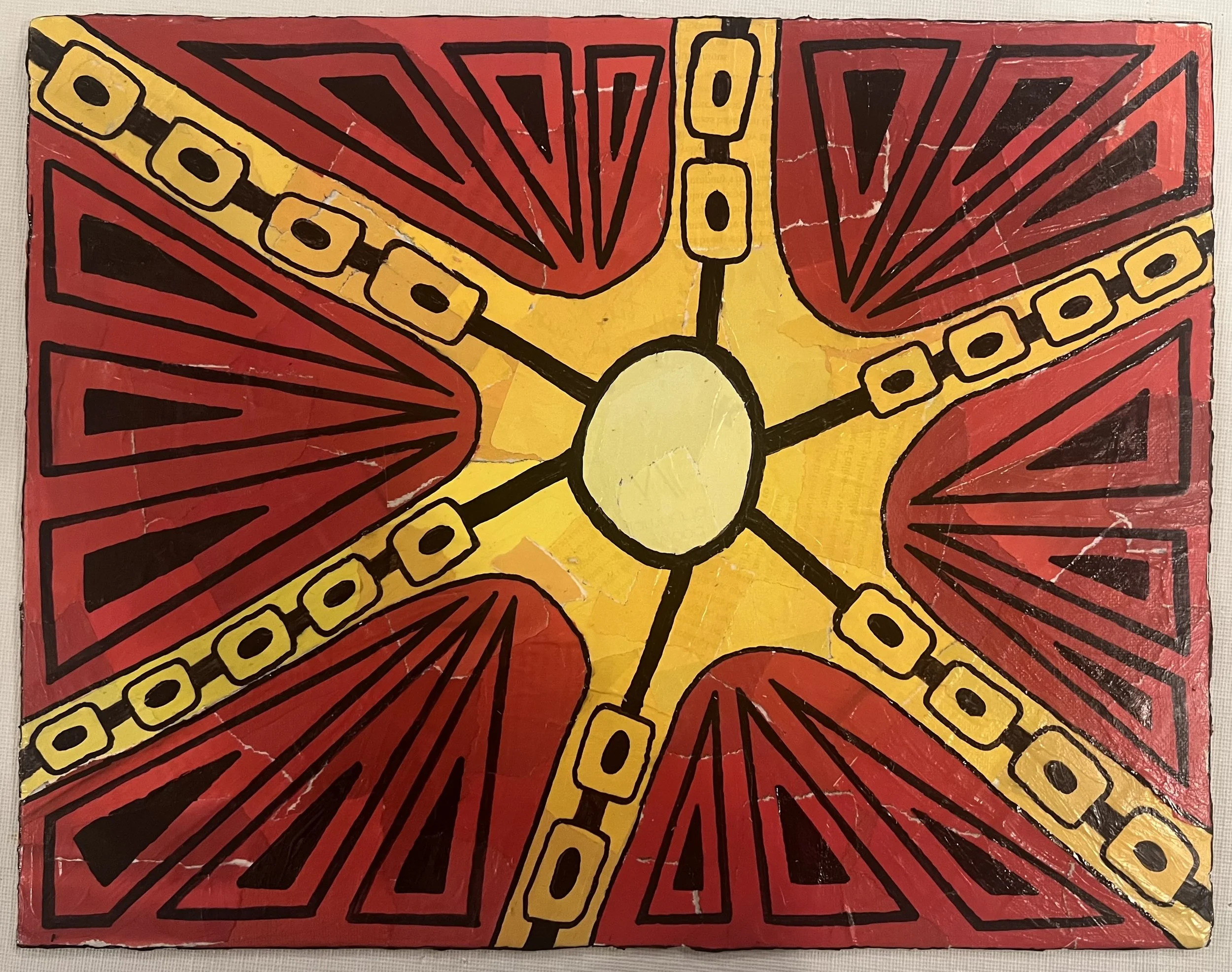 To capture that reality, I built this piece as a collage of many small, torn pieces of paper, a structure that mirrors the fragmented way chronic pain can make me feel inside. The radiating shapes and intense colors visualize the frequency and force of my nerve pain, transforming something invisible into something tangible. This work is both a map and a revelation: a way to show others what I’ve been carrying, and a reminder that the unseen is no less real.
